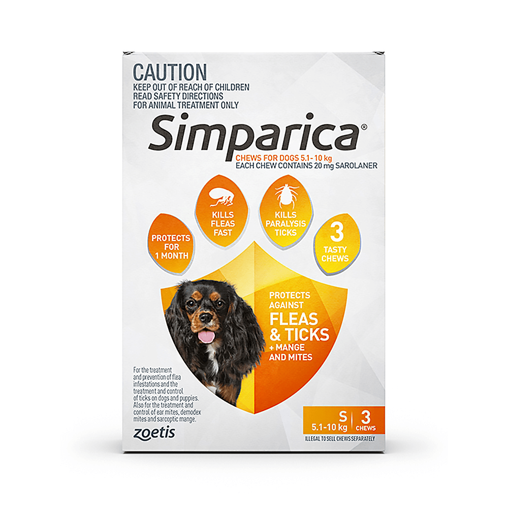 Simparica: For Small Dogs 5.1 – 10kg (11.2 – 22lbs) 3 Pack